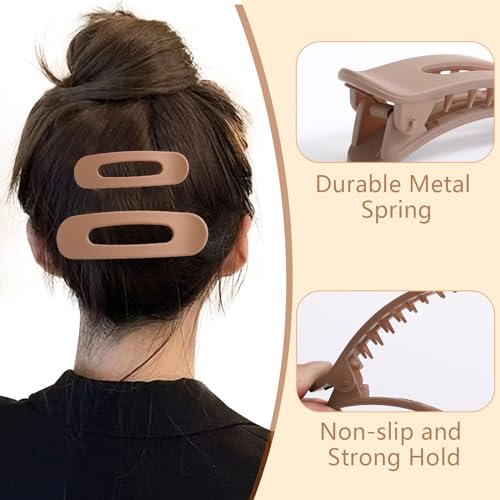 【Comfort and Fit】The surface of the lay down claw clips is made of matte material, which is very smooth and harmless to hair. They are so light that you can hardly feel their presence on your head. You can lean your head back while wearing them.