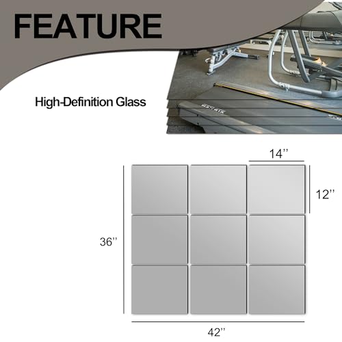 Delma Home Gym Mirror Tiles, Large Workout Mirrors for Home Gym,Square Mirror(Glass,14x12x9PCS), Large Full Body Mirror for Gym, Wall Mirror for Garage, Bedroom, Bathroom (Glass – 14”x12” – 9PCS)