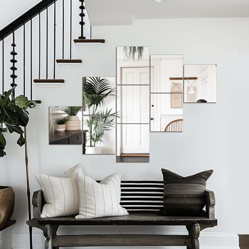 WIDE APPLICATION: Square mirror tiles could decorate bathroom, home gym, bedroom, which can be mounted on wall,tiles,closets,doors.